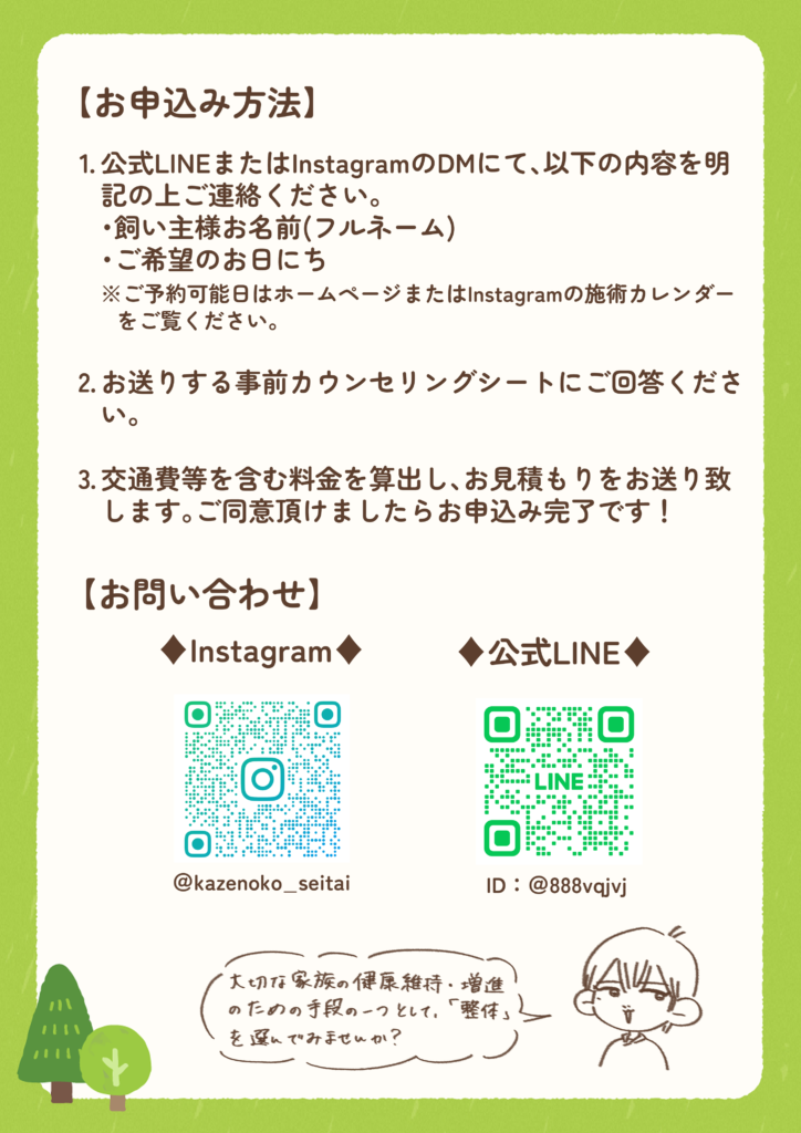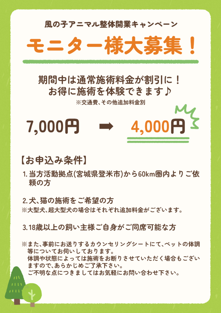 ただいま風の子アニマル整体では、施術をお得に体験できる開業キャンペーンを開催中です!